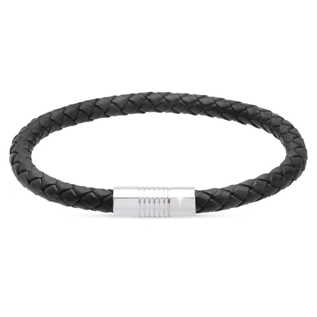 Kožený náramek z chirurgické oceli- v černé barvě, 2002560-2