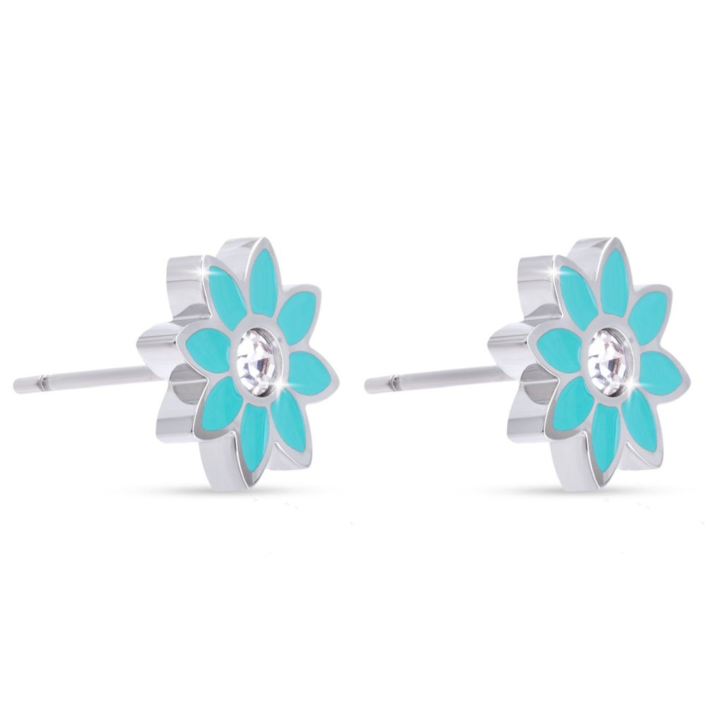 Náušnice z chirurgické oceli s modrou květinou 1003131