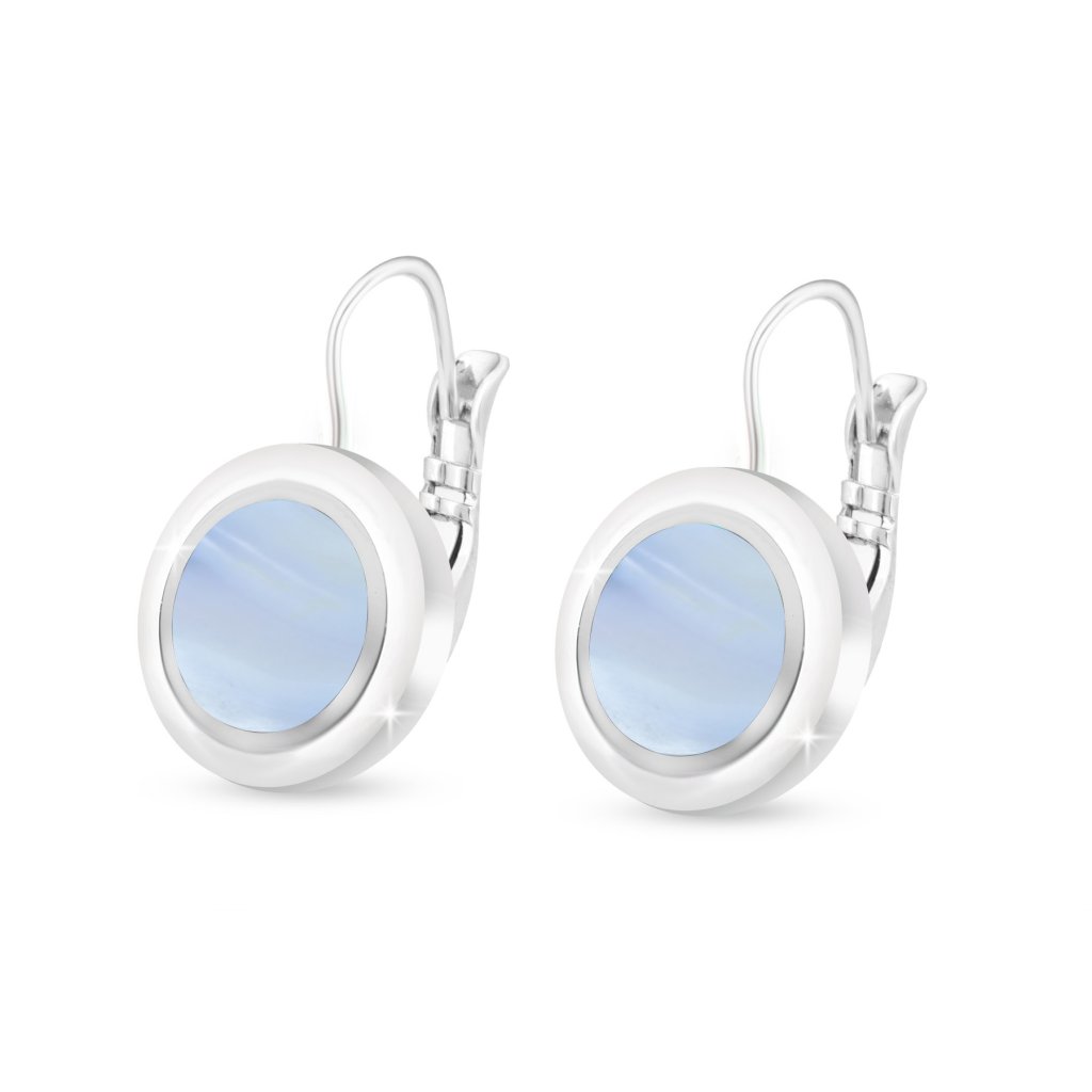 Náušnice z nerezové oceli s perleťovým středem jsou elegantní ozdobou pro všední i slavnostní den.