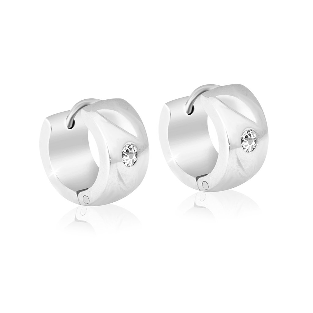 Elegantní leštěné náušnice s rýhováním a zirkonem z chirurgické oceli