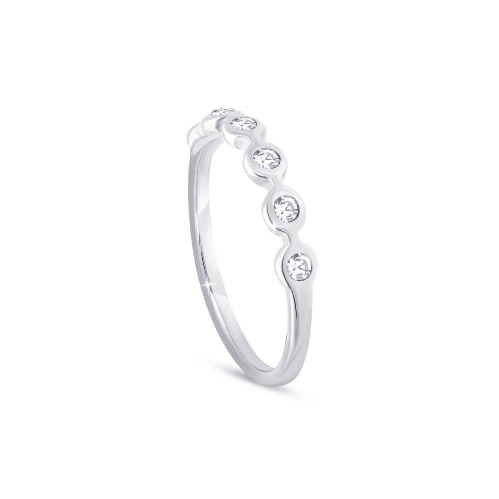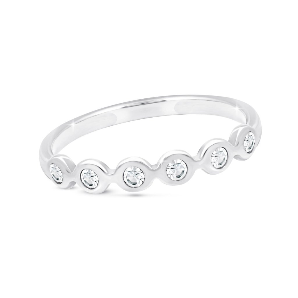 - Nikdy neztratí svou krásu, je odolný vůči vodě, nerezaví a nezčerná. Prstýnek je ozdoben vyskládanými čirými kamínky, které se krásně třpytí.