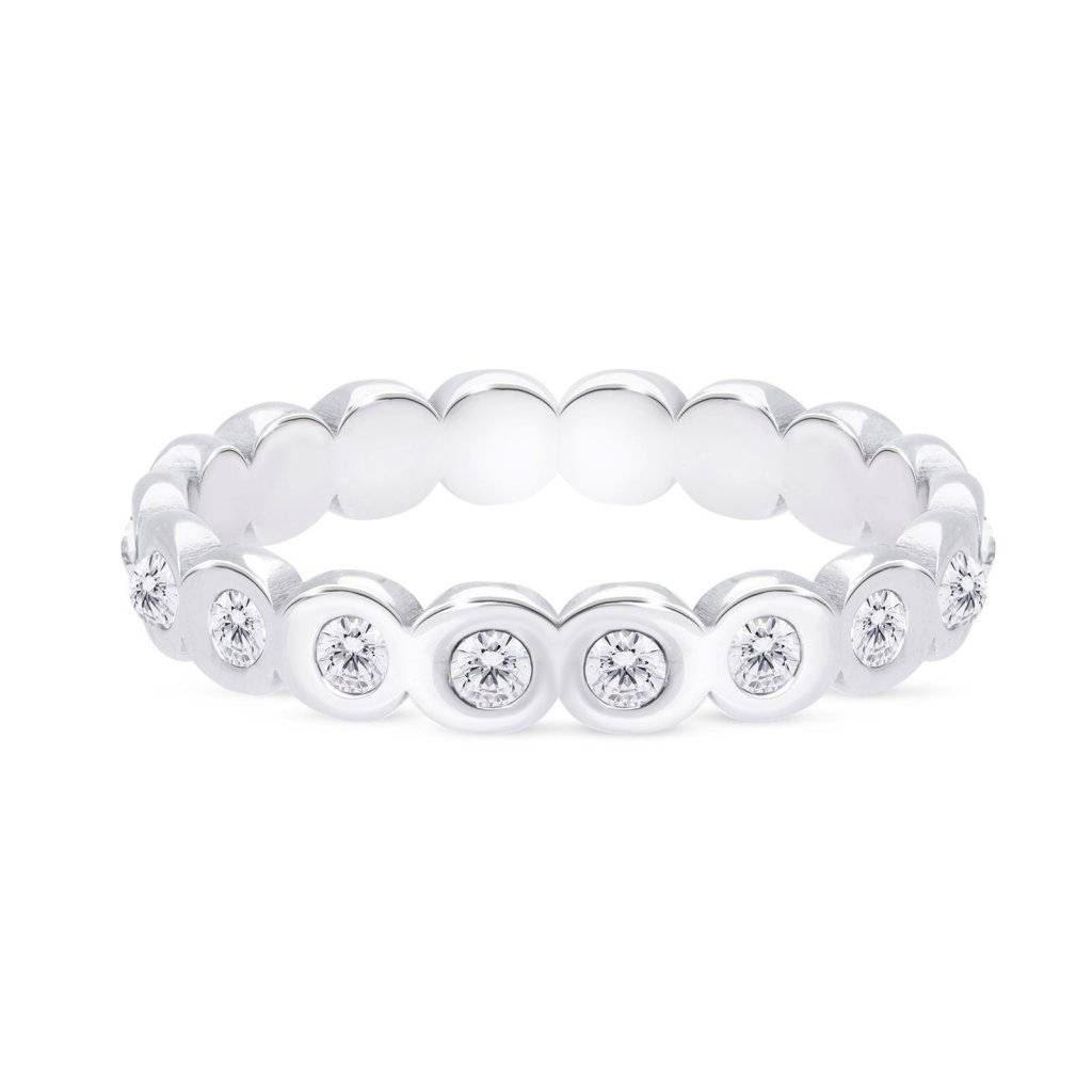 - Dámský jemný prsten z chirurgické oceli, spojená kolečka zirkony.