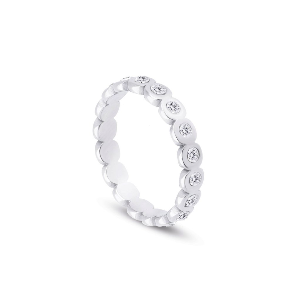 Dámský jemný prsten z chirurgické oceli, spojená kolečka zirkony 4000359
