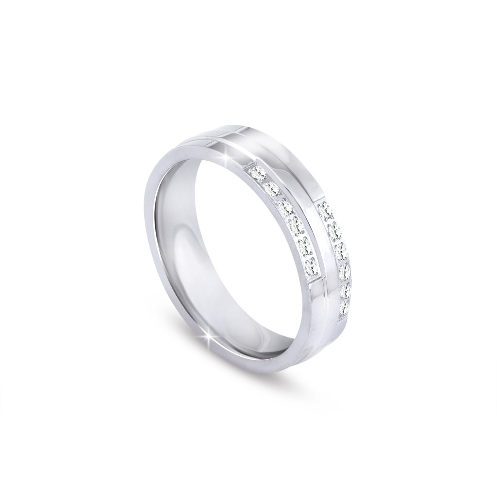 Dámský masivní prsten z chirurgické oceli, ozdobený pásy zirkonů.