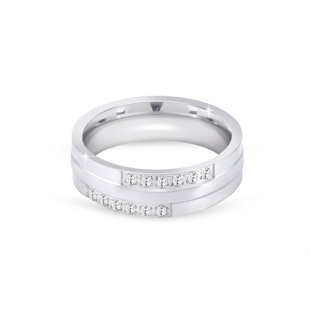 Dámský masivní prsten z chirurgické oceli, ozdobený pásy zirkonů 4000187
