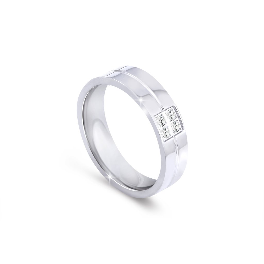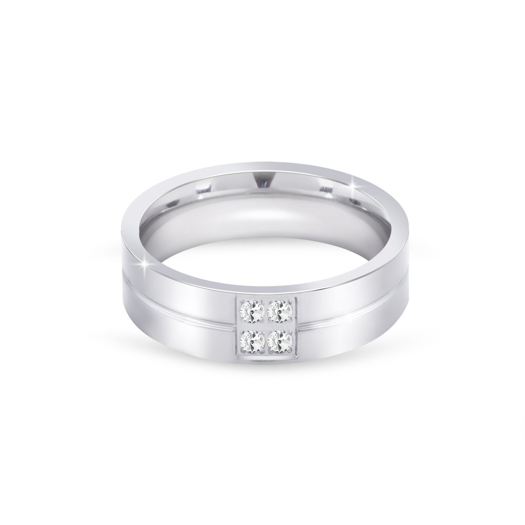 Dámský masivní prsten z chirurgické oceli, ozdobený zirkony ve tvaru čtverce 4000259