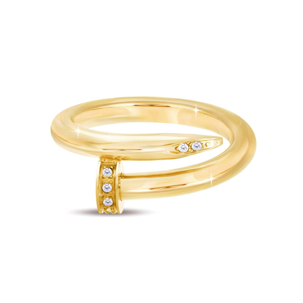 Dámský masivní prsten z chirurgické oceli, pozlacený 14k, hřebík se zirkony 4000355