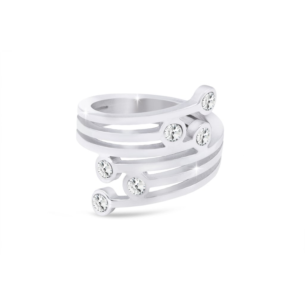 Dámský masivní prsten z chirurgické oceli, zakroucená spirála se zirkony 4000206