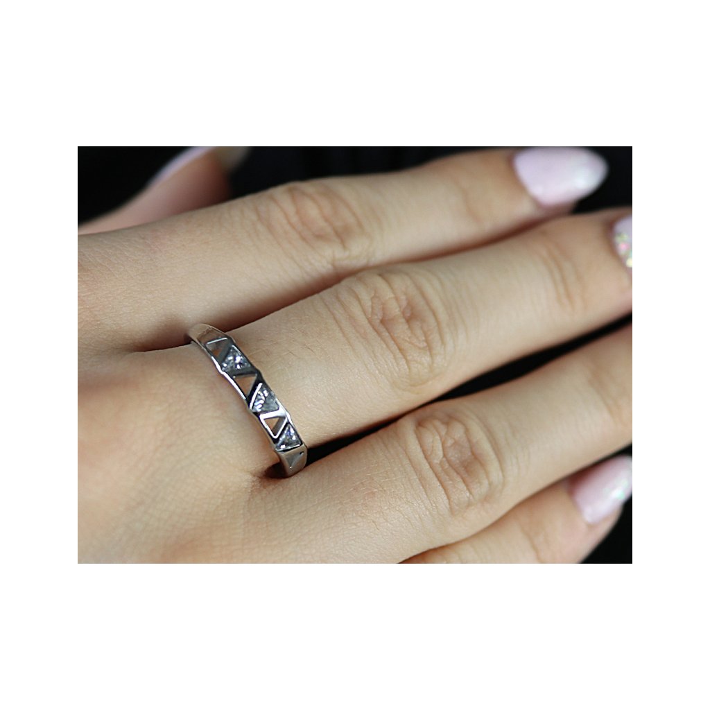 Dámský prsten z chirurgické oceli s průřezy ve tvaru trojúhelníků 4000384