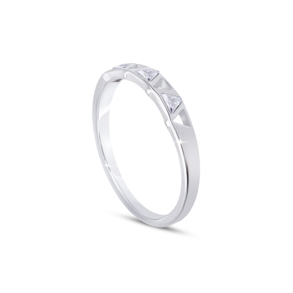 - Dámský prsten z chirurgické oceli s průřezy ve tvaru trojúhelníků.