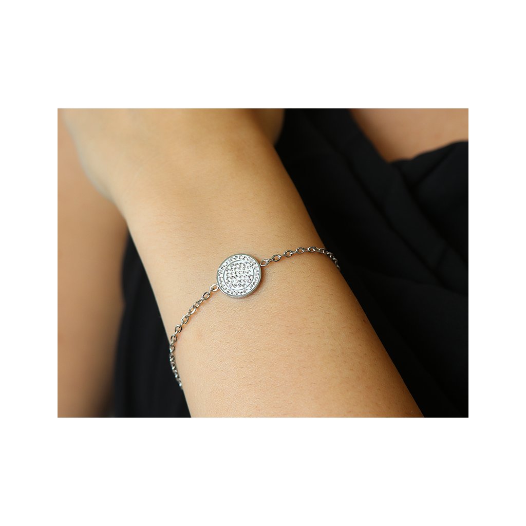Náramek z chirurgické oceli, kruh ozdobený čirými zirkony 2002340