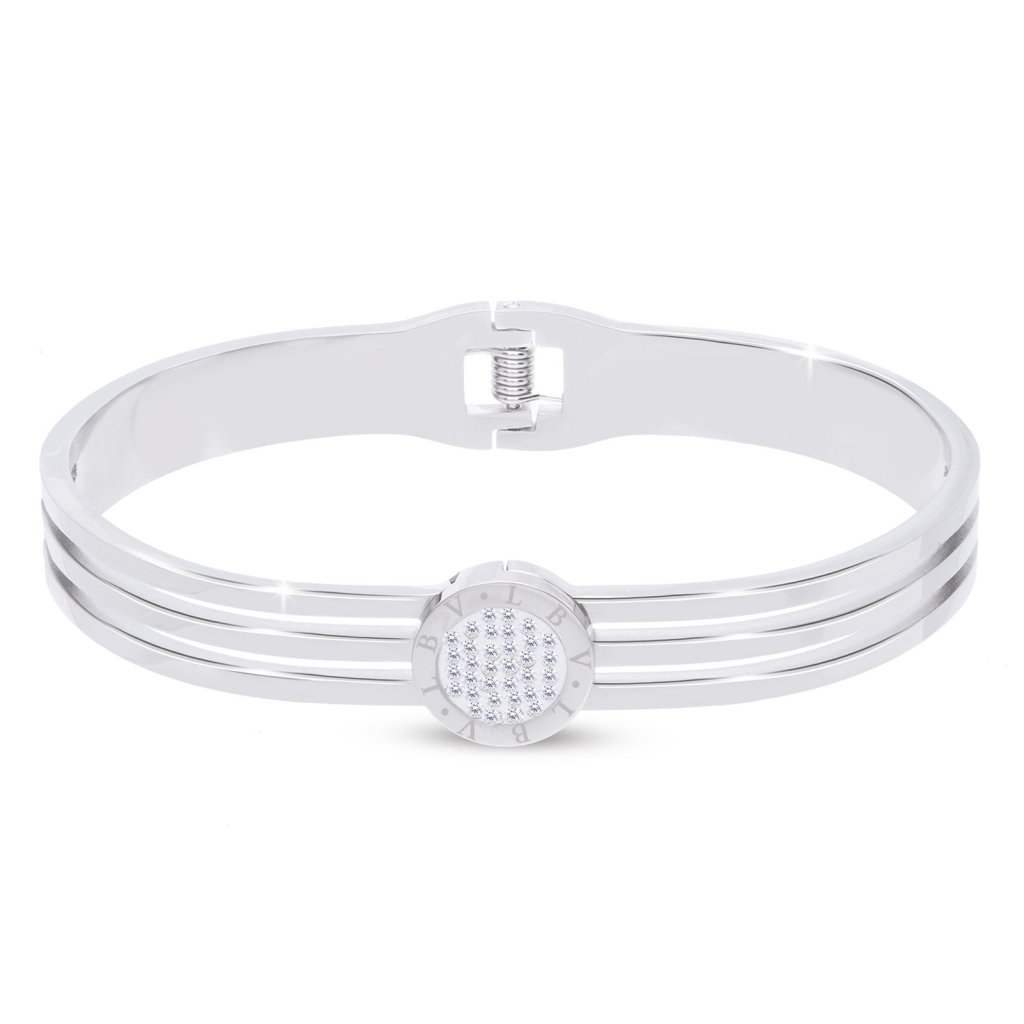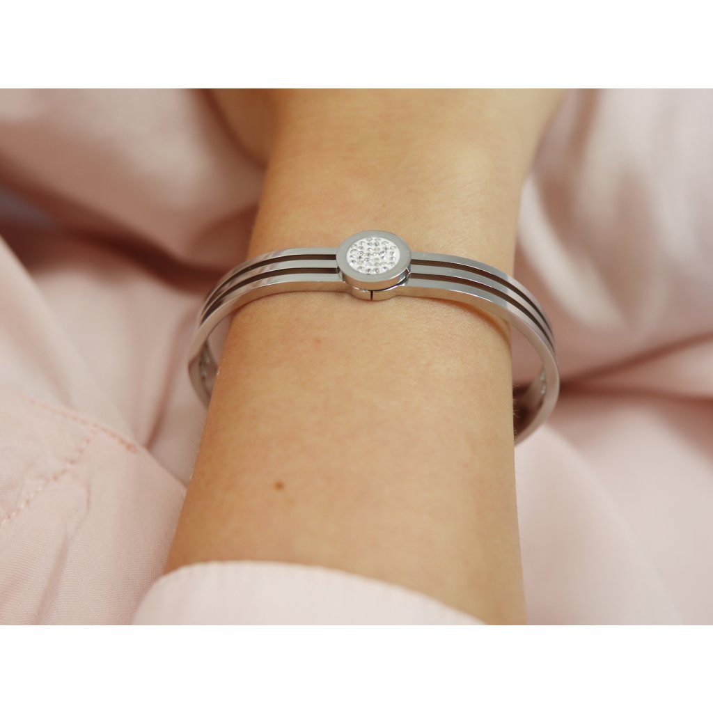 Náramek z chirurgické oceli - pevný, kolečko se třpytivými krystaly 2002263