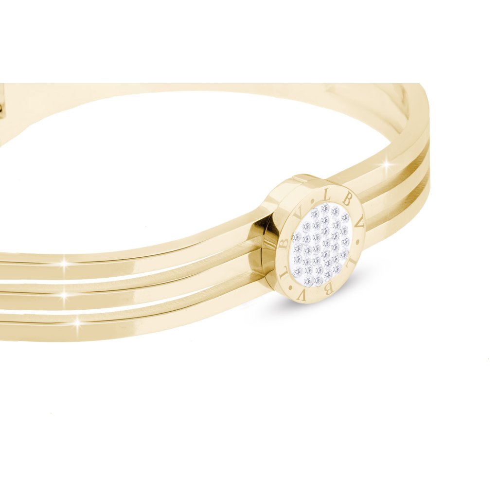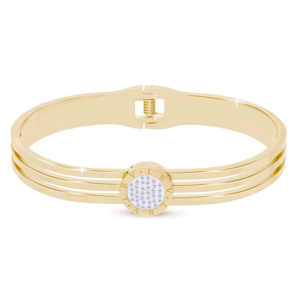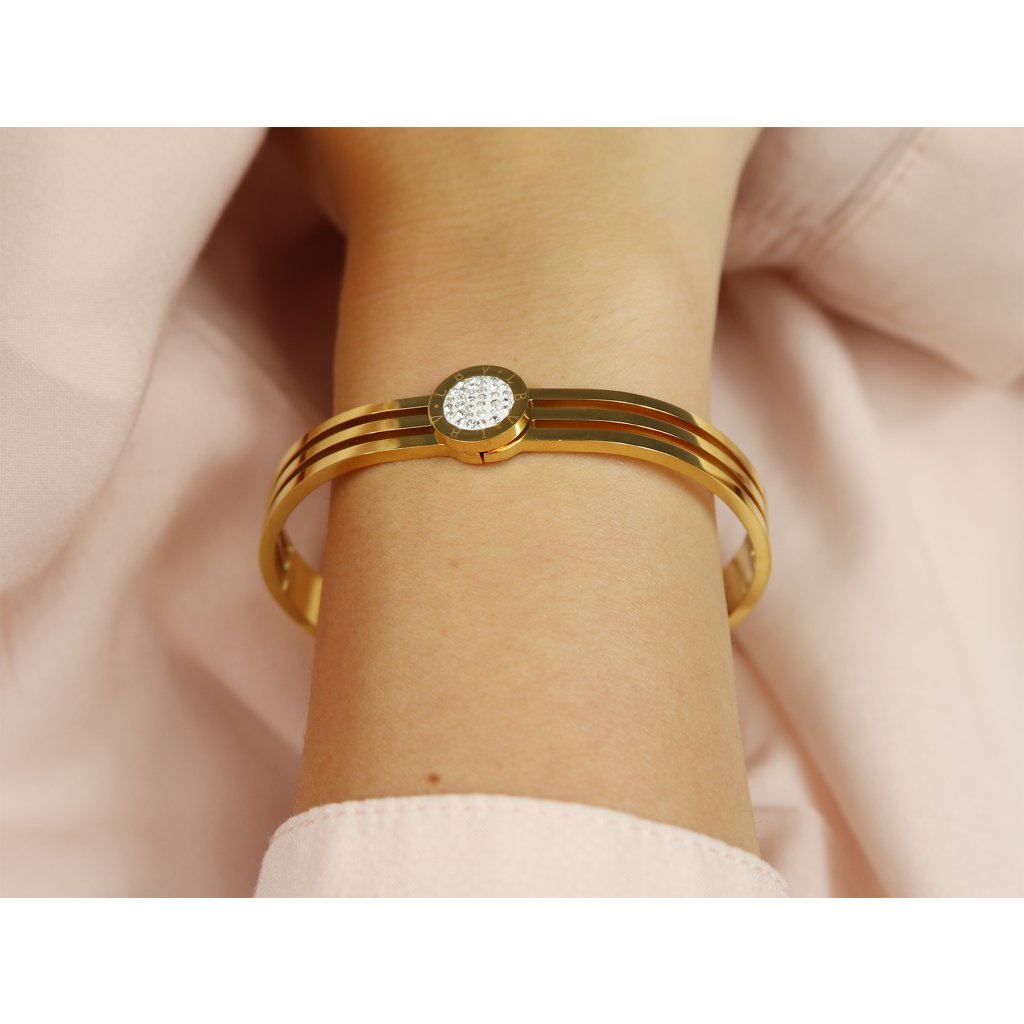 Náramek z chirurgické oceli - pevný, pozlacený 18k, kolečko se třpytivými krystaly 2002264