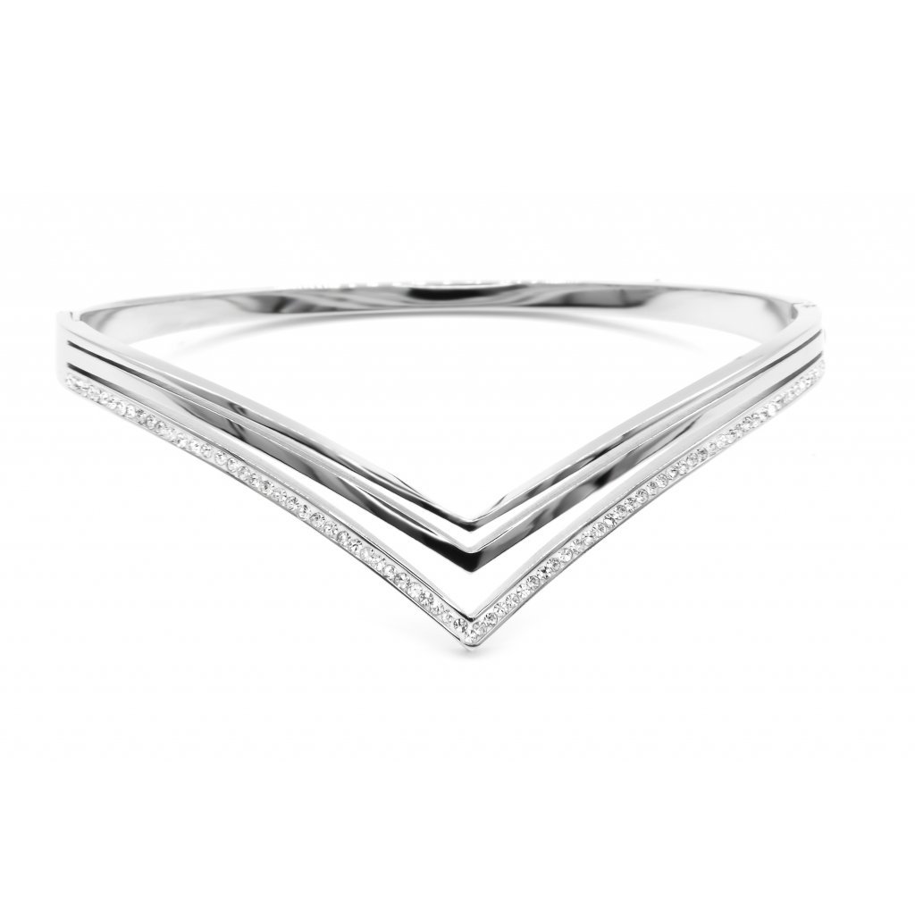 Náramek na ruku z chirurgické oceli se zirkony, velmi zajímavý tvar.