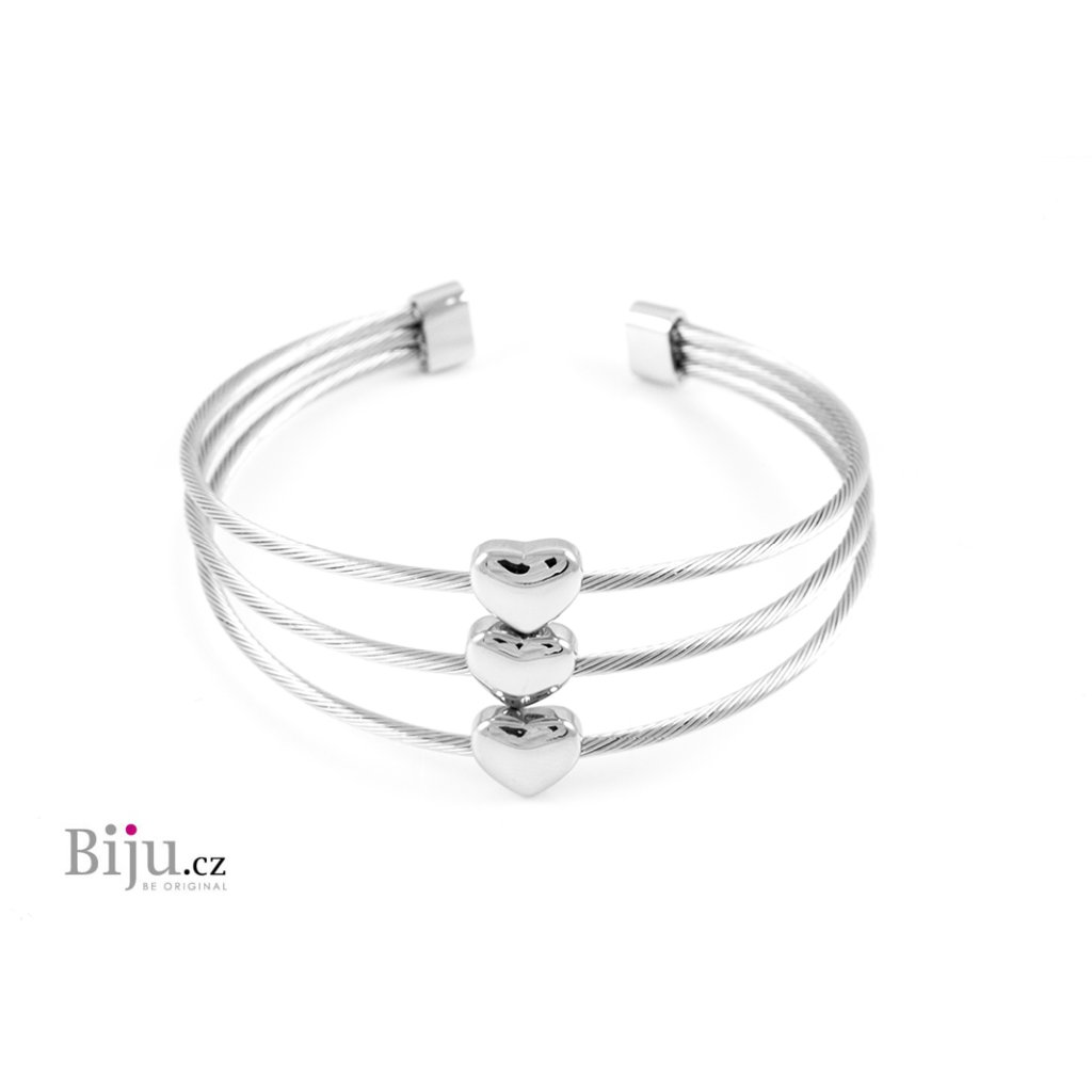 VERONA 1338 Otevřený náramek z chirurgické oceli se srdíčky