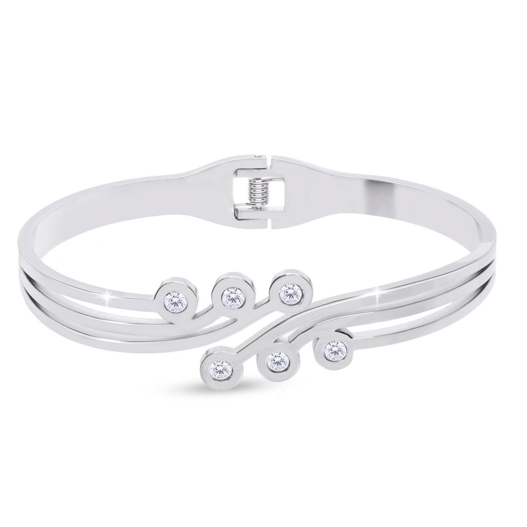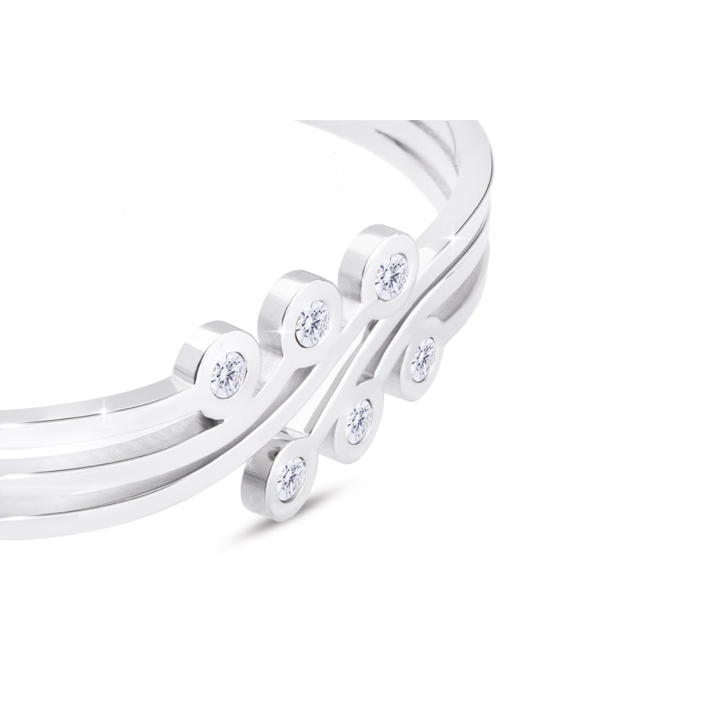 Náramek na ruku z chirurgické oceli - pevný, vlnitý s čirými kamínky zirkonů 2002262
