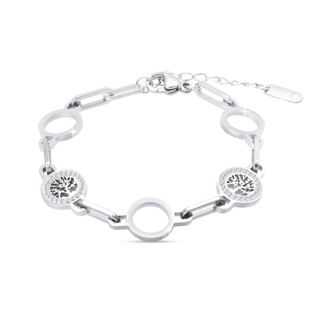 Náramek na ruku z chirurgické oceli, dva stromy života s kroužky a zirkony 2002126