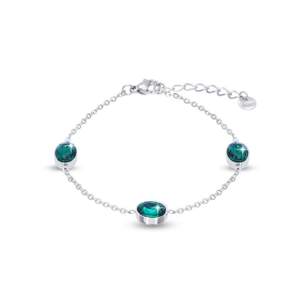 Náramek je tvořený jemného řetízku z chirurgické oceli, který je ozdobený oválky. Tyto oválky jsou vyskládány smaragdovými zirkony, které dělají tento náramek velmi zajímavý a elegantní. Zapínáni je klasické a lze nastavit podle velikosti zápěstí.