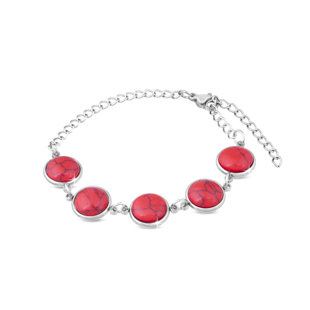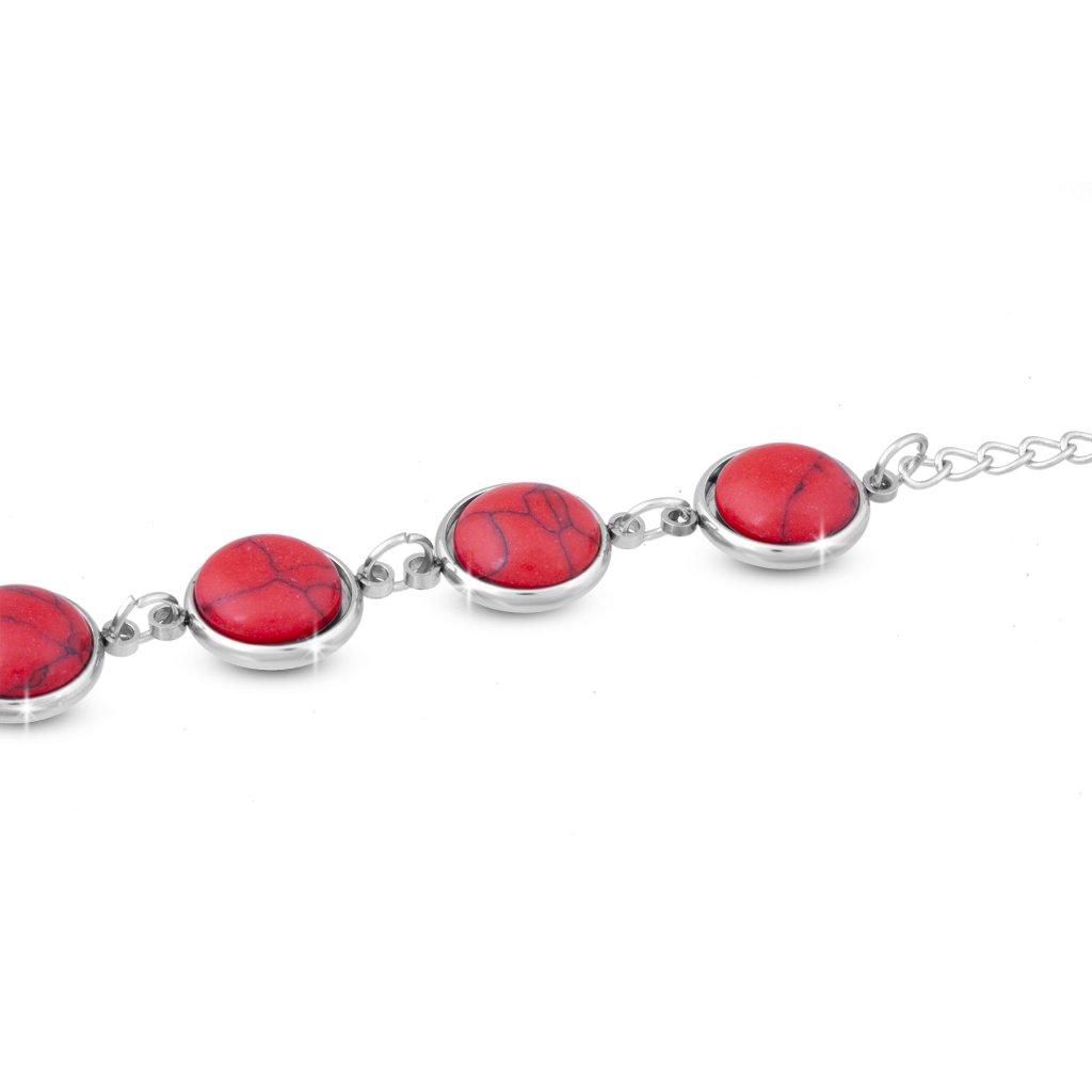 Náramek na ruku z chirurgické oceli, kolečka ozdobené umělými kameny - červené barvy 2002039
