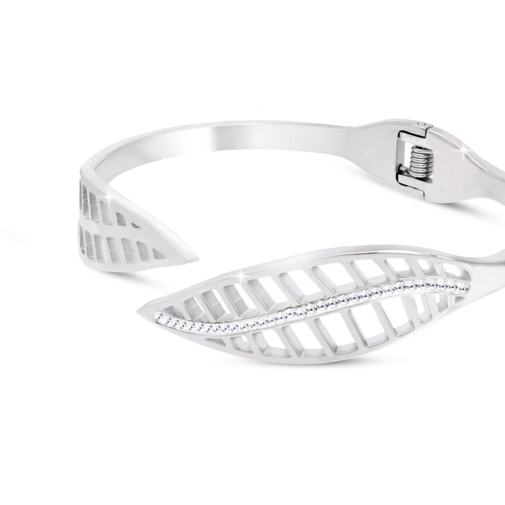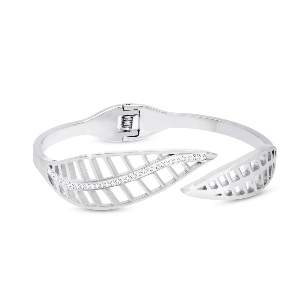Náramek na ruku z chirurgické oceli - otevřený se dvěma listy a zirkony 2002175