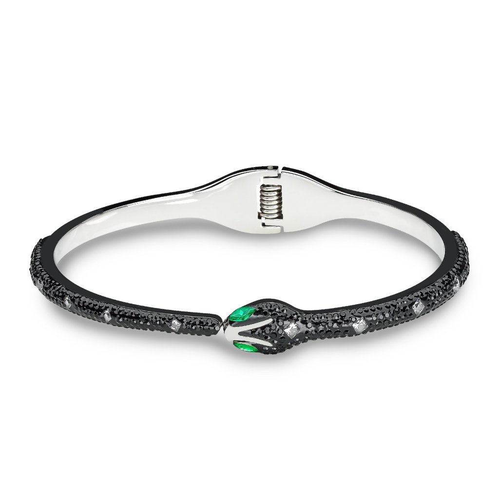 Náramek na ruku z chirurgické oceli - pevný, had osazený černými zirkony 2001856