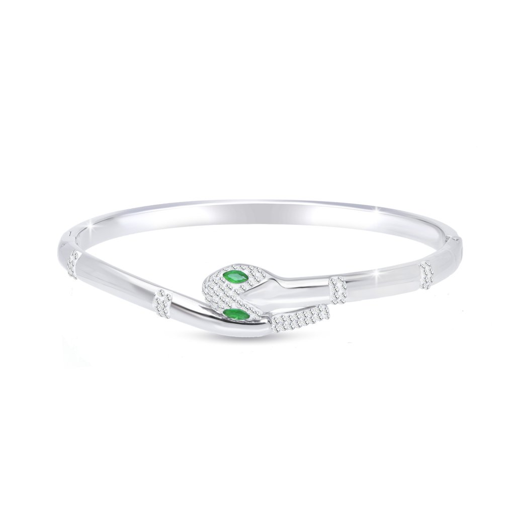 Náramek na ruku z chirurgické oceli - pevný, had se zelenýma očima 2002112