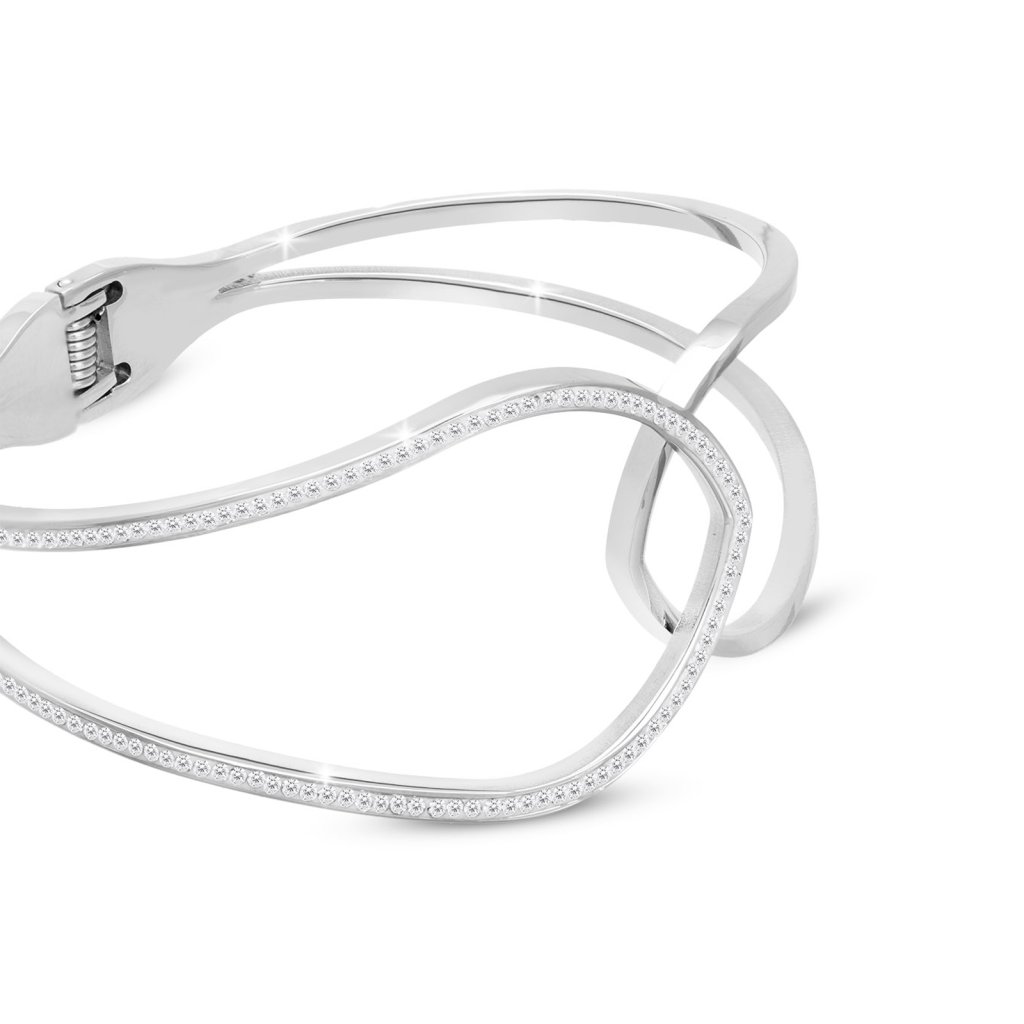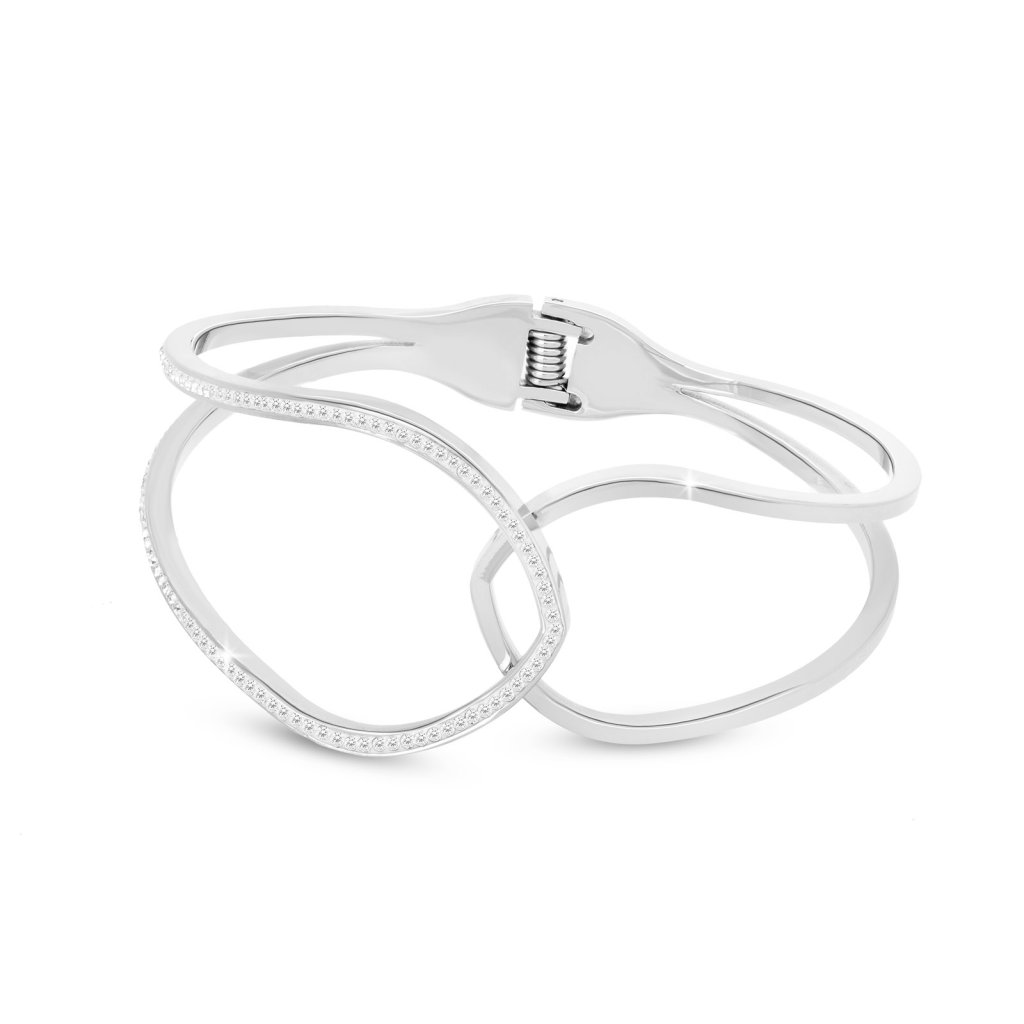 Náramek na ruku z chirurgické oceli - pevný, lesklé kapky se zirkony 2002212