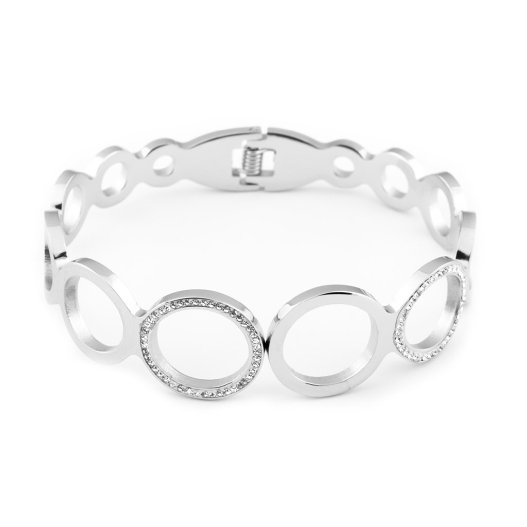 Kvalitní náramek z nerezové oceli, pevný typ se zirkony. Náramek se hodí ke každodennímu nošení. Působí velice decentním dojmem. Tento výrobek neobsahuje těžké kovy.Návod k použití: Nerezová ocel je tvrdý a extrémně odolný materiál, který vzdoruje poškrábání, korozi a ušpinění. Má dlouhou životnost, je odolná vůči sladké a slané vodě. Šperky z nerezové oceli jsou vhodné i pro alergiky, kteří nesnesou běžné kovy. Nerezová ocel nereaguje s tělními tekutinami, proto se žádné složky kovu neuvolňují do kůže. Pro své vlastnosti bývá někdy nazývána materiálem 21. století.