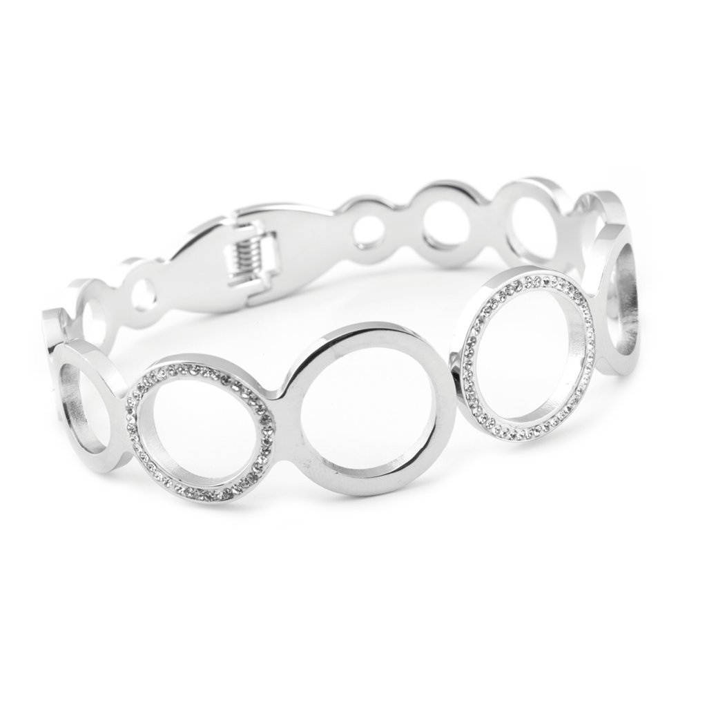 Náramek na ruku z chirurgické oceli - pevný, kolečka se zirkony 2001559