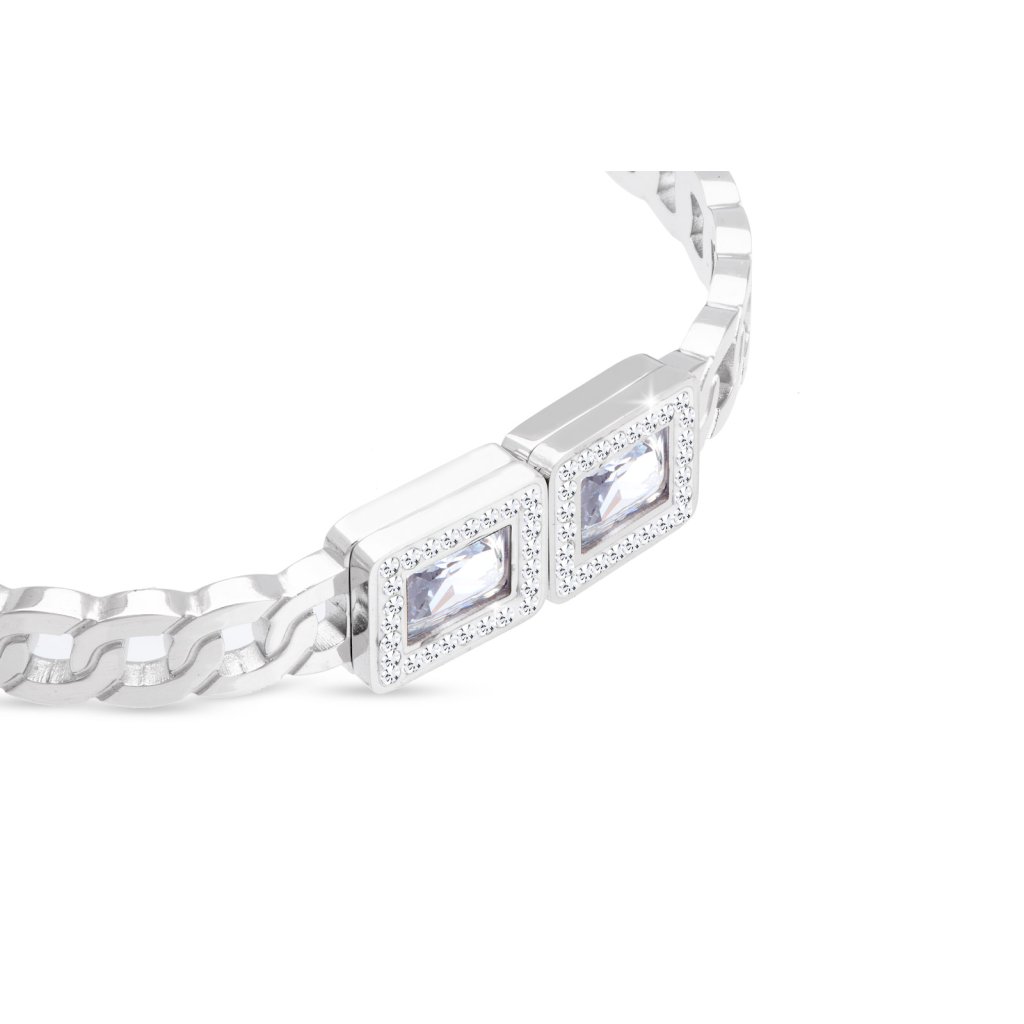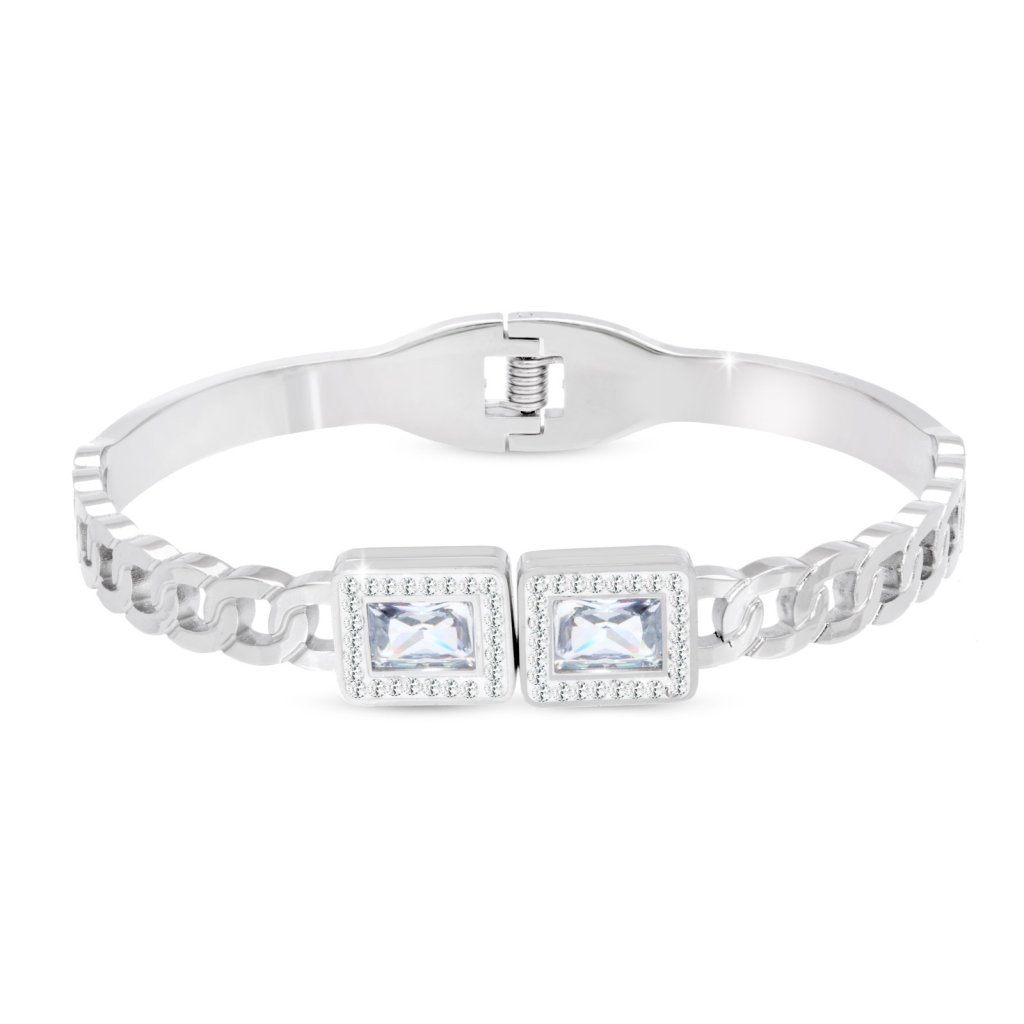 Náramek na ruku z chirurgické oceli - pevný, obdélníky s čirými zirkony 2002176
