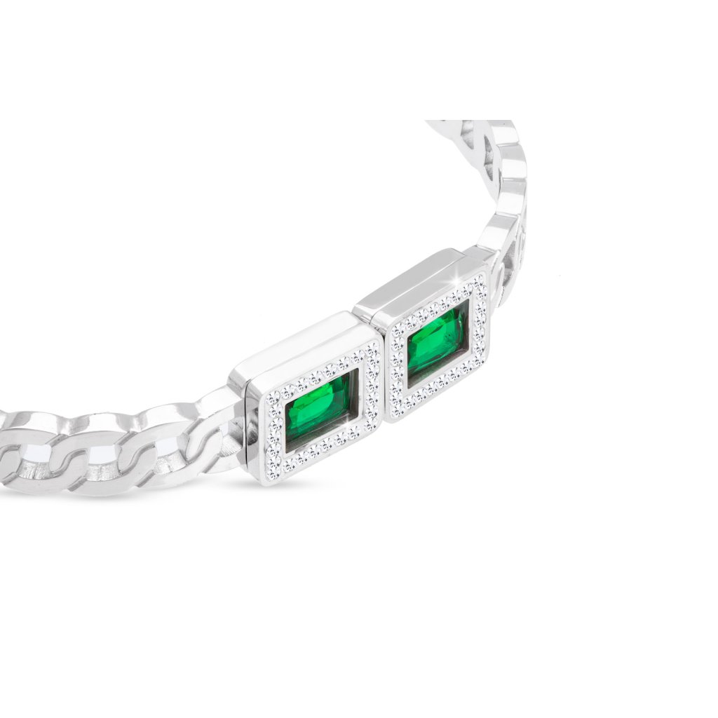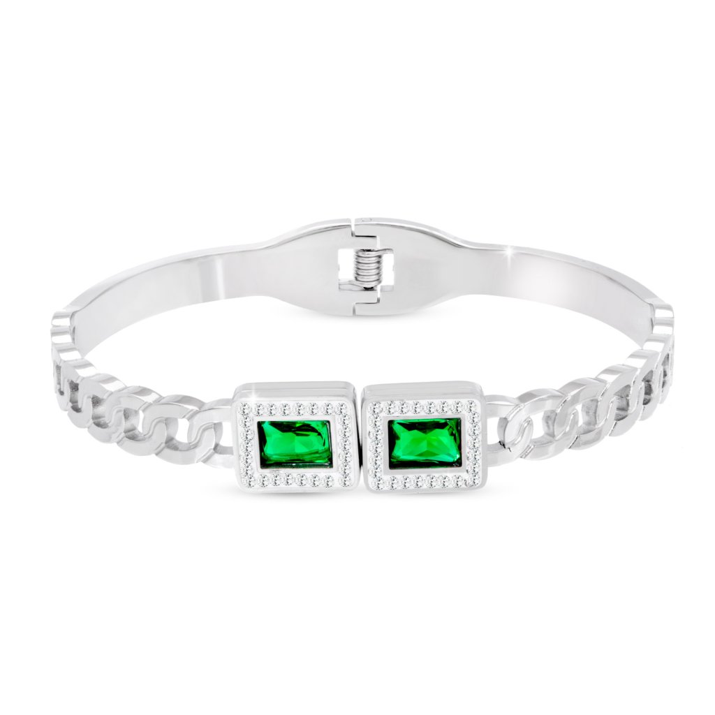 Náramek na ruku z chirurgické oceli - pevný, obdélníky se zelenými zirkony 2002176-1