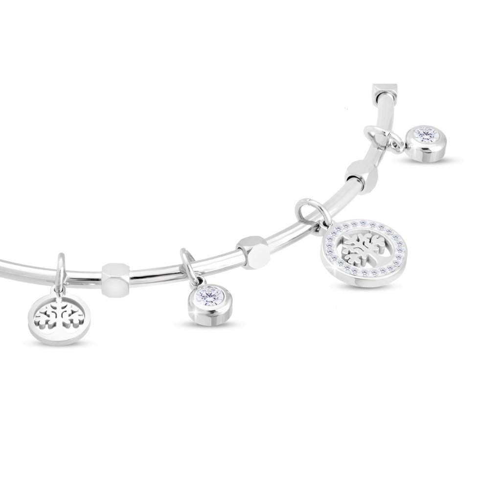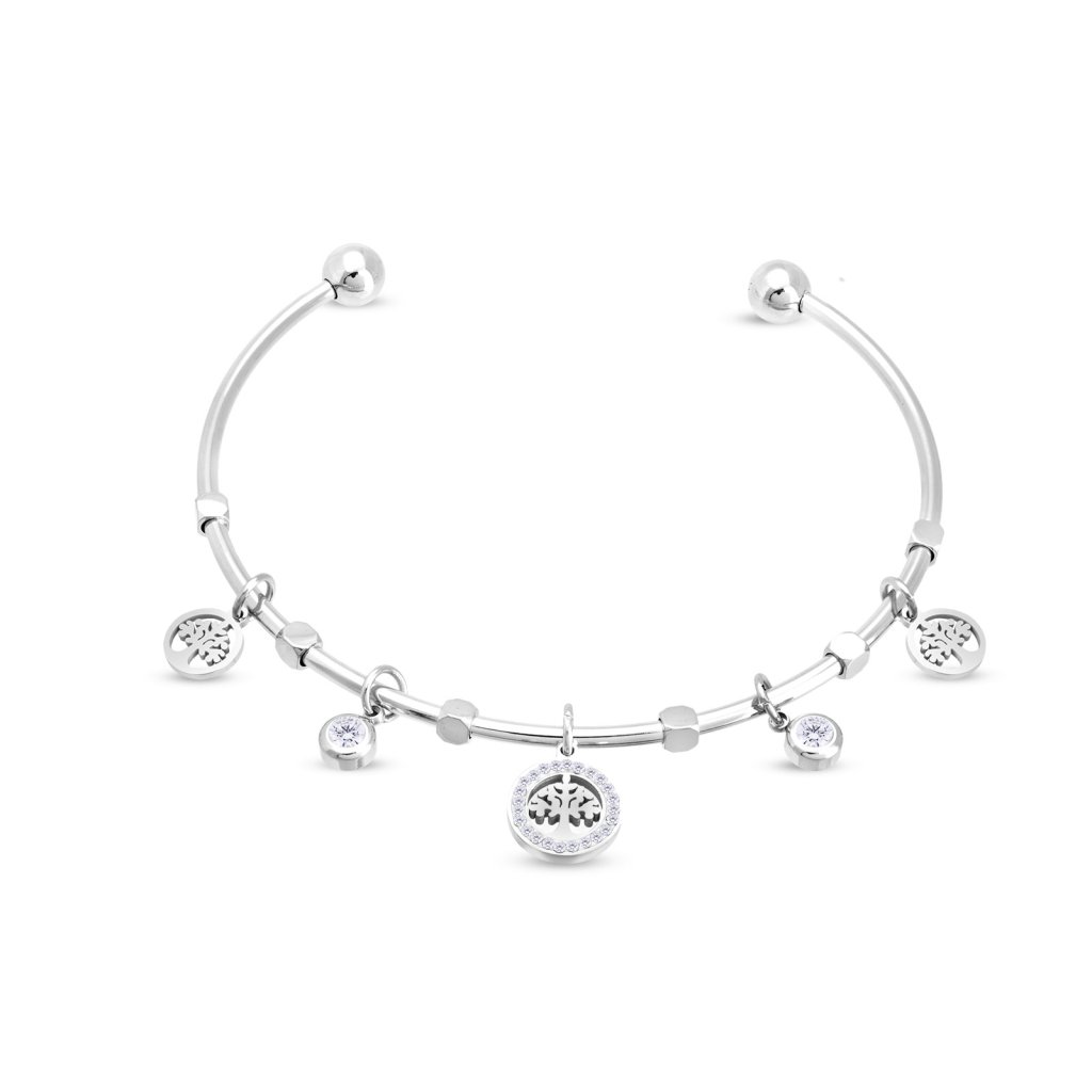 Náramek na ruku z chirurgické oceli - pevný, strom života s čirými zirkony 2002218