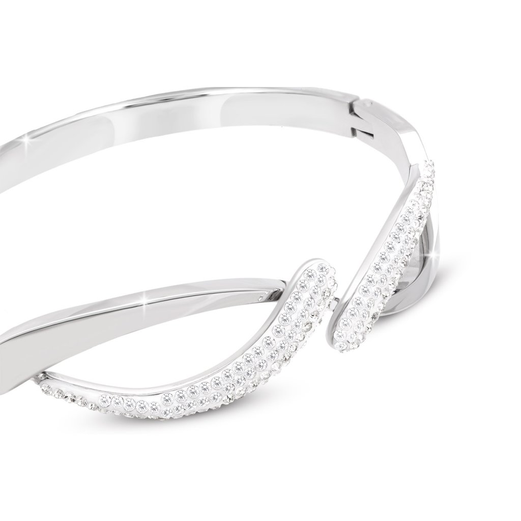 Náramek na ruku z chirurgické oceli - pevný, zakroucené linie se zirkony 2002214