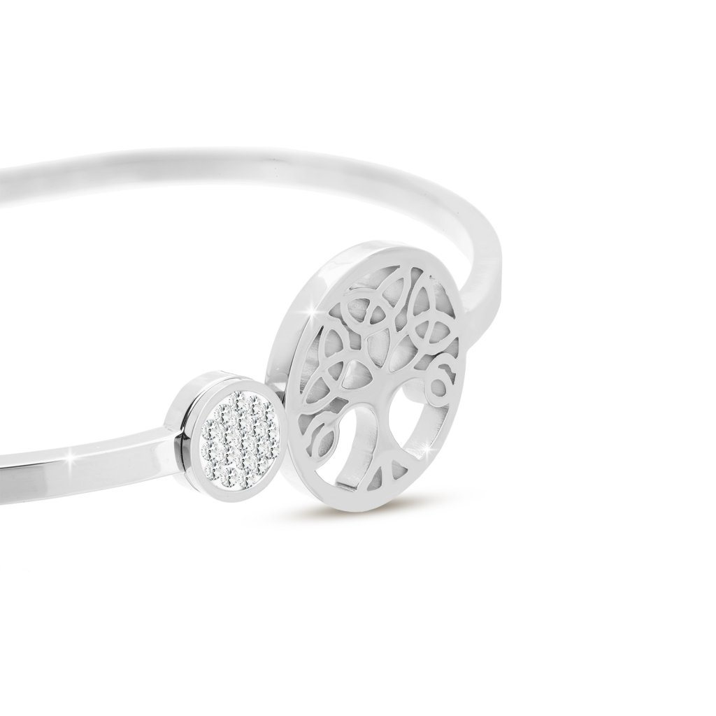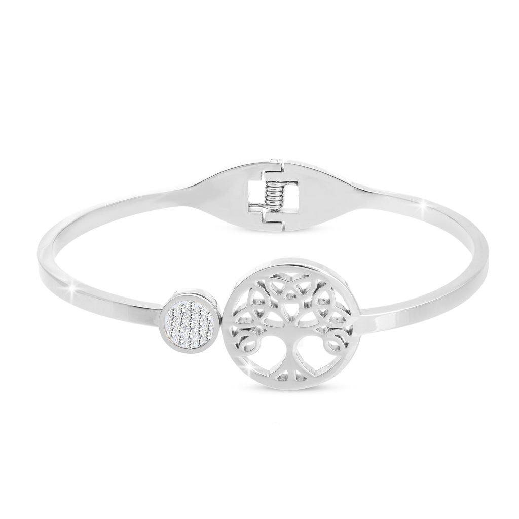 Náramek na ruku z chirurgické oceli - pevný 5127-27, strom života s lístky a zirkony 2002123-1