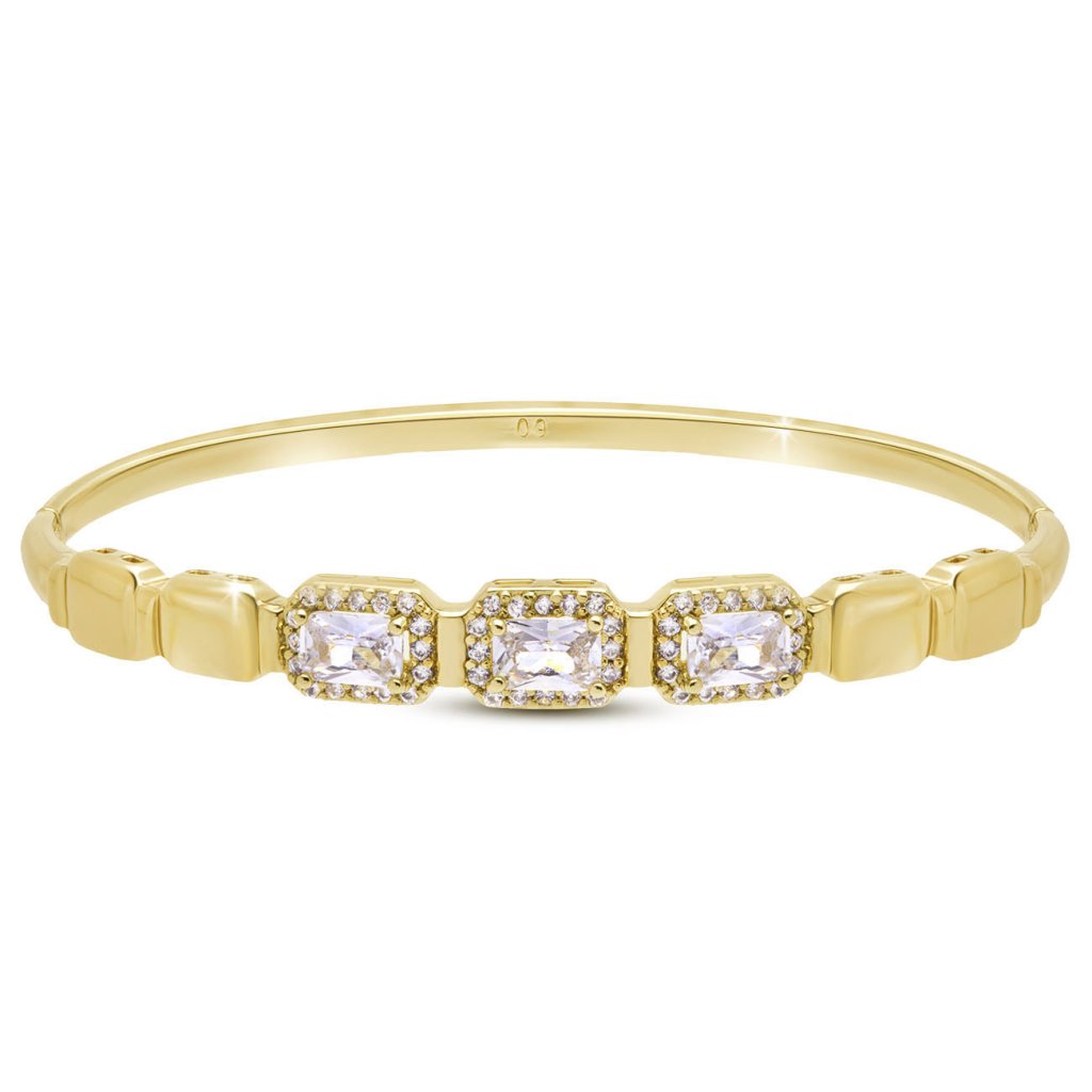 Náramek pevný, pozlacený 14k s třemi velkými zirkony, 2002716