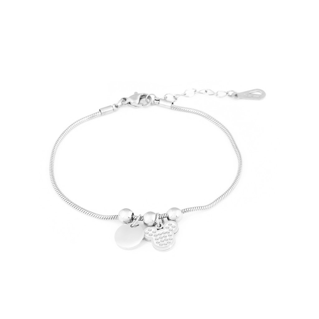 Náramek z chirurgické oceli, kolečko a hlava Mickey Mouse se zirkony 2001839-1