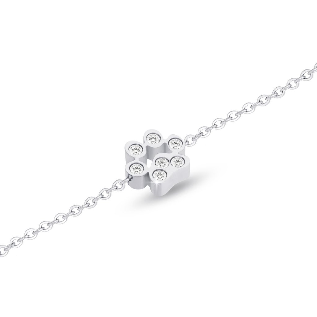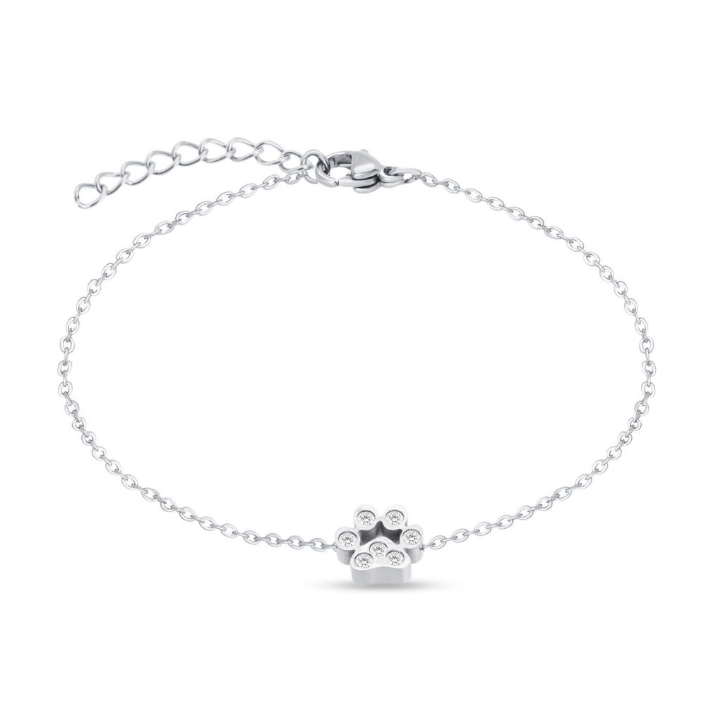 - Náramek z chirurgické oceli, jemná tlapka ozdobená zirkony.