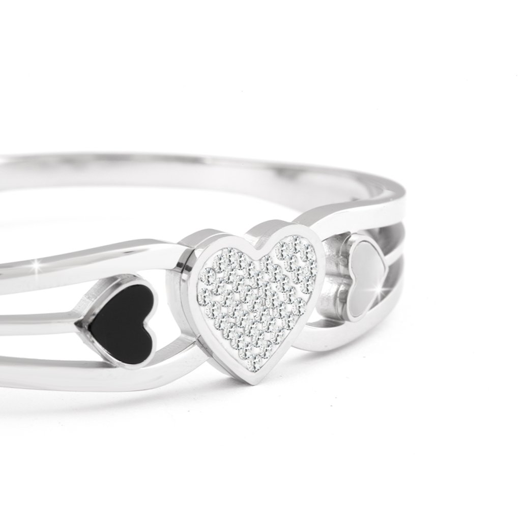 VERONA 1849 Náramek z chirurgické oceli se třemi srdci – černé, bílé a zdobené