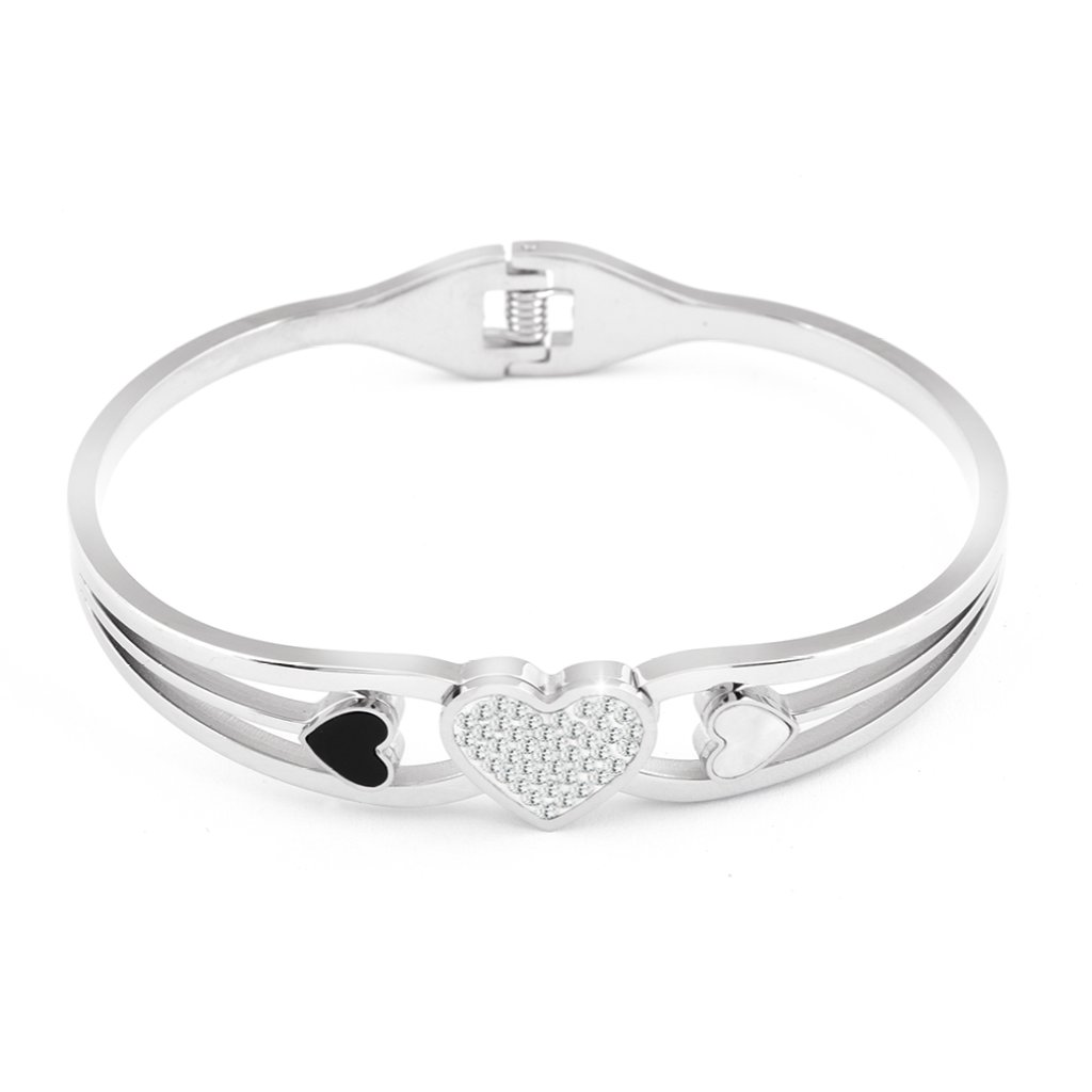 Kvalitní náramek z nerezové oceli, srdce se zirkony, perletí a černým kamenem se hodí ke každodennímu nošení.
