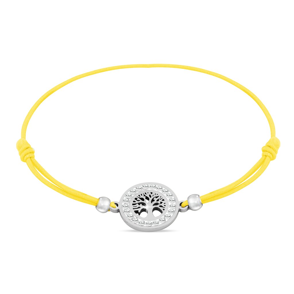 Náramek z chirurgické oceli, strom života se zirkony a žlutou gumičkou 2001907
