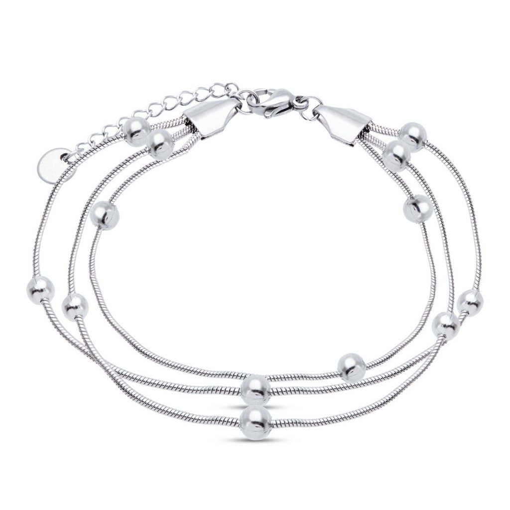 TOKIO 2735 Náramek z chirurgické oceli, trojité lanko s kuličkami Ellami
