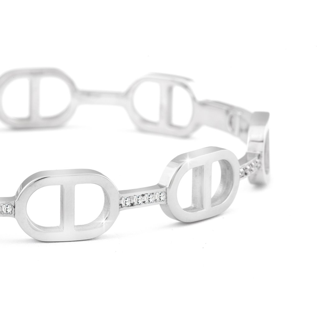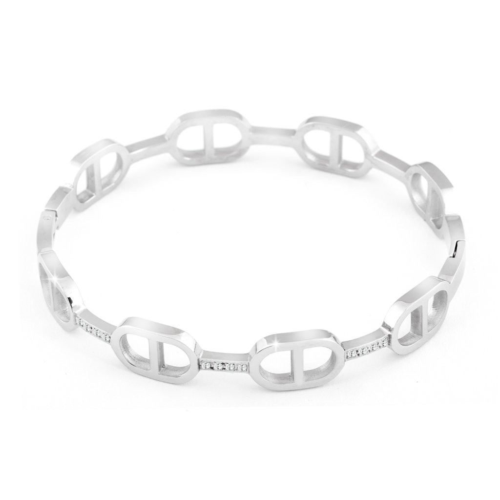 Kvalitní náramek z nerezové oceli, zdobené oválky se zirkony se hodí ke každodennímu nošení.