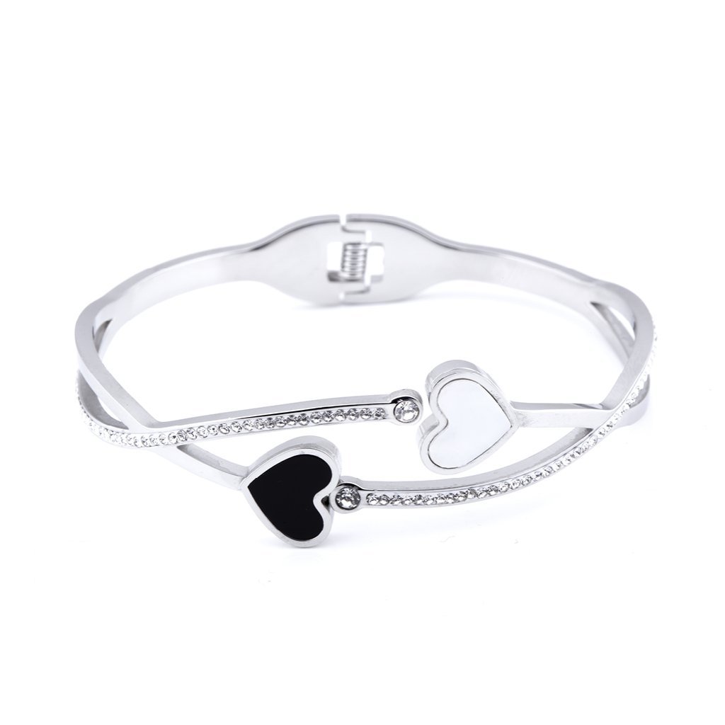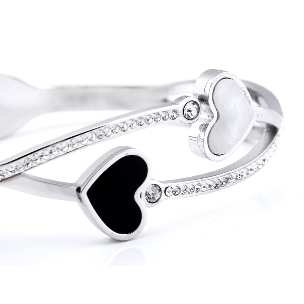 VERONA 1669 Náramek z chirurgické oceli, dvě srdíčka se zirkony