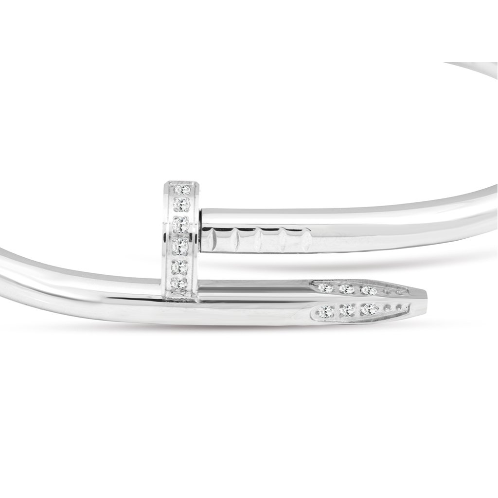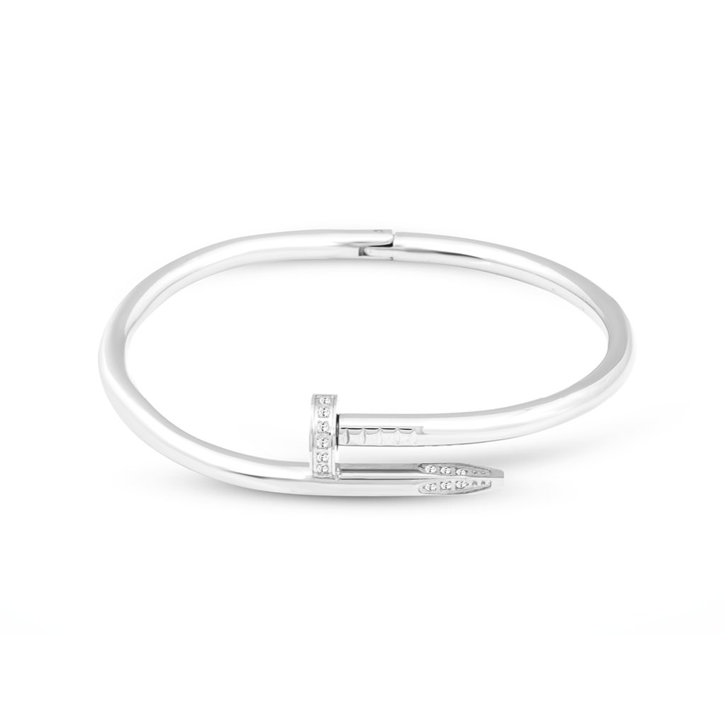 Kvalitní náramek z nerezové oceli ve tvaru hřebíku se zirkony, se hodí ke každodennímu nošení.