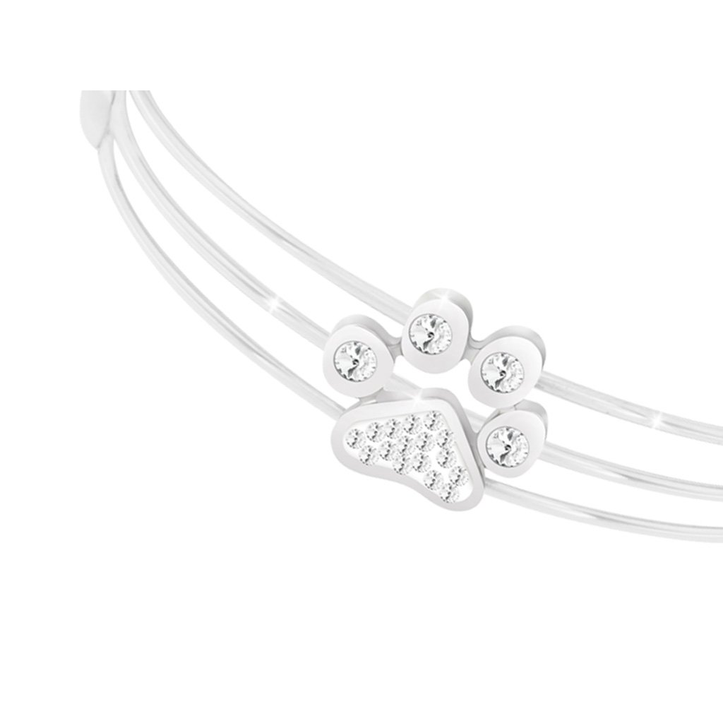 Náramek z chirurgické oceli pevný, tlapka ozdobená zirkony 2002007