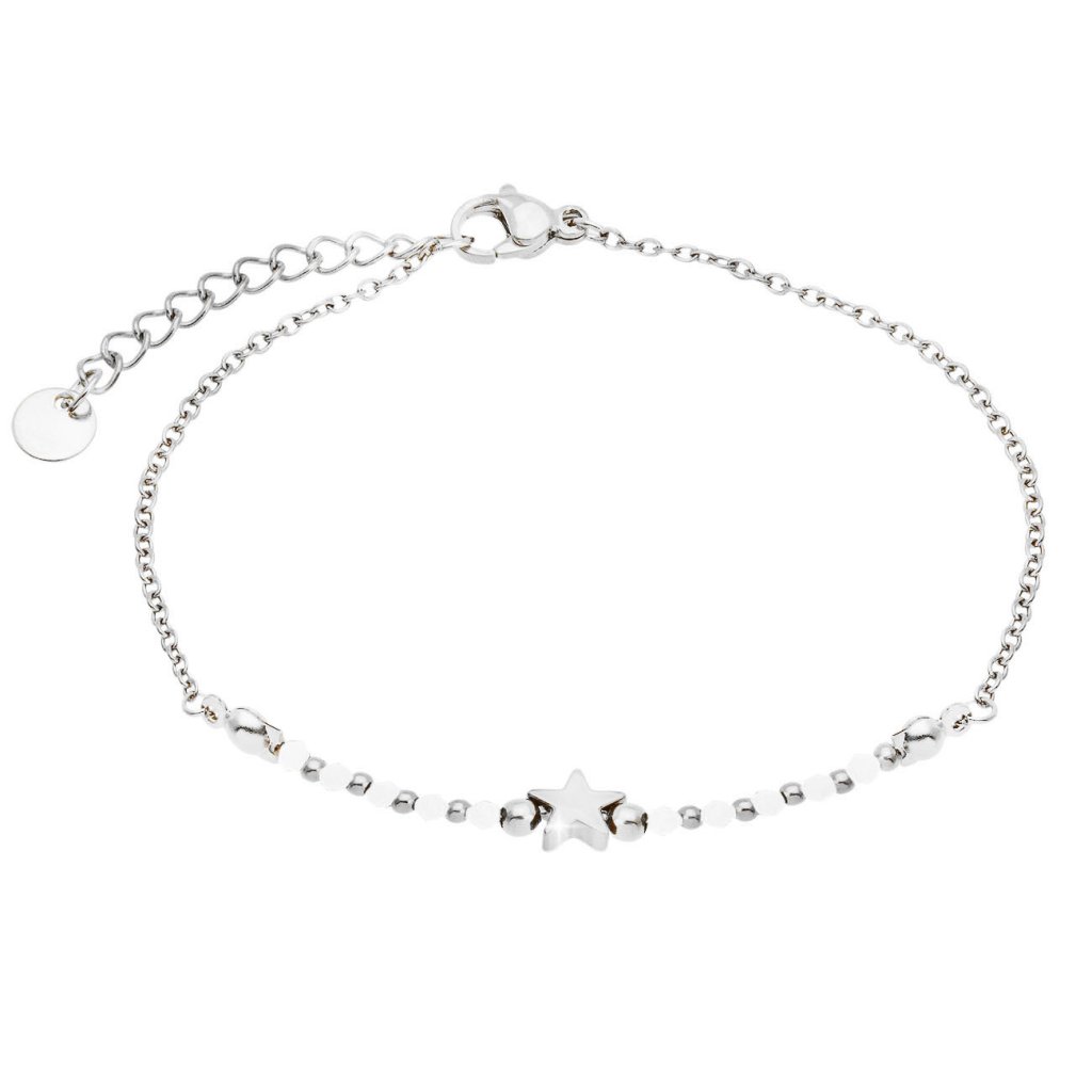 Náramek z chirurgické oceli s hvězdičkou a bílým korálkem 2002493-1