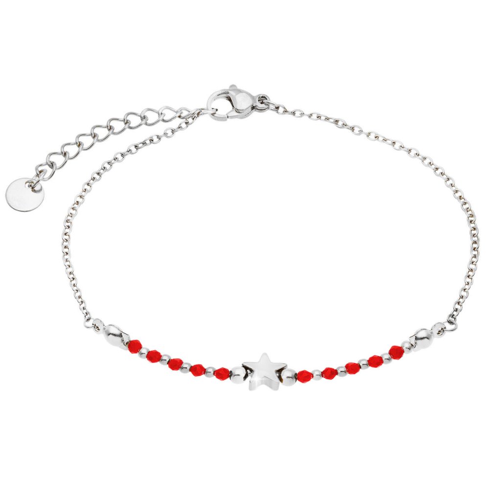 Náramek z chirurgické oceli s hvězdičkou a červeným korálkem 2002493-2