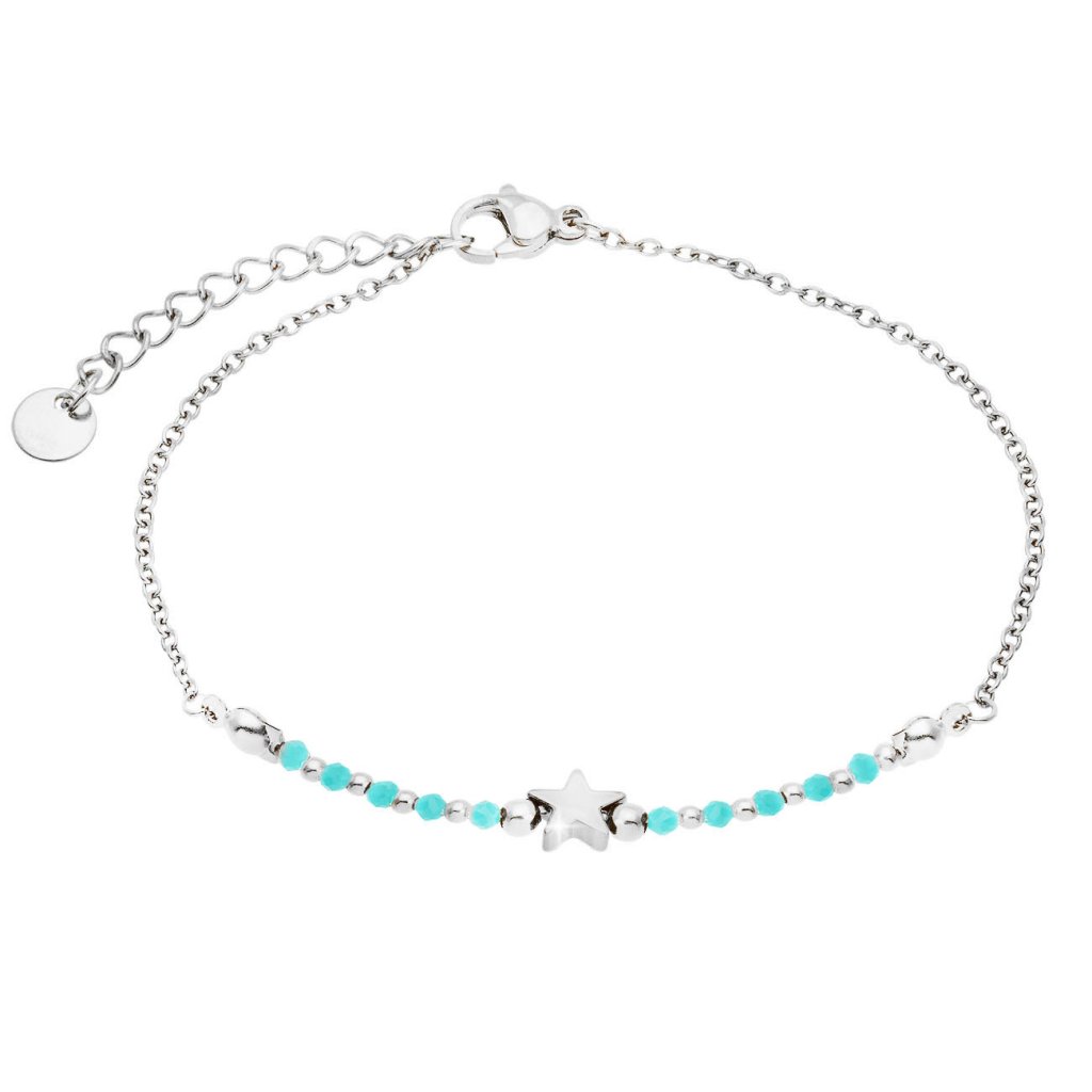 Náramek z chirurgické oceli s hvězdičkou a tyrkysovým korálkem 2002493-3