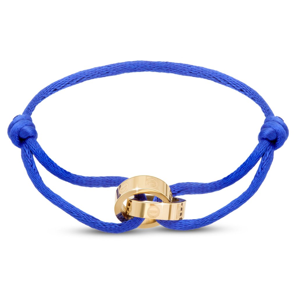 Náramek z chirurgické oceli s kroužky, modrá šňůrka 2002685