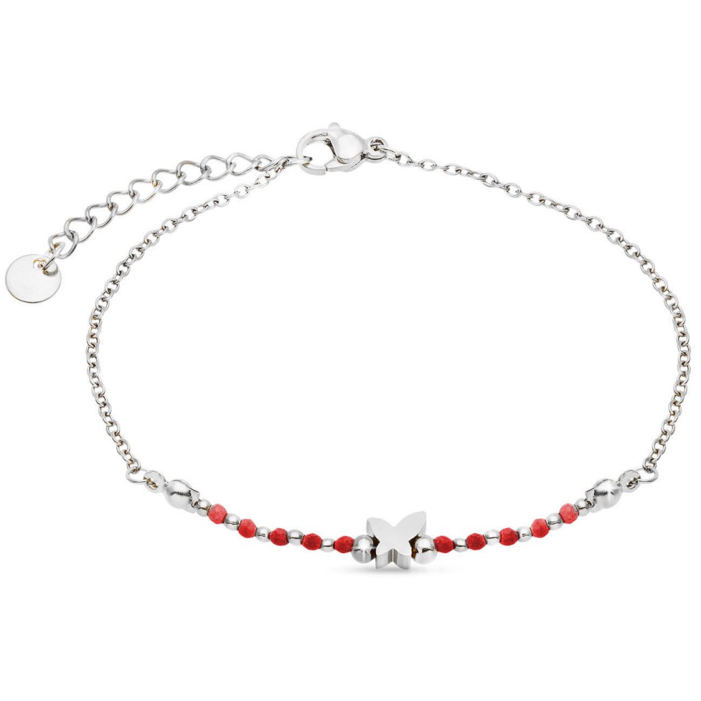 TOKIO 2492-2 Náramek z chirurgické oceli s motýlkem a červeným korálkem Ellami